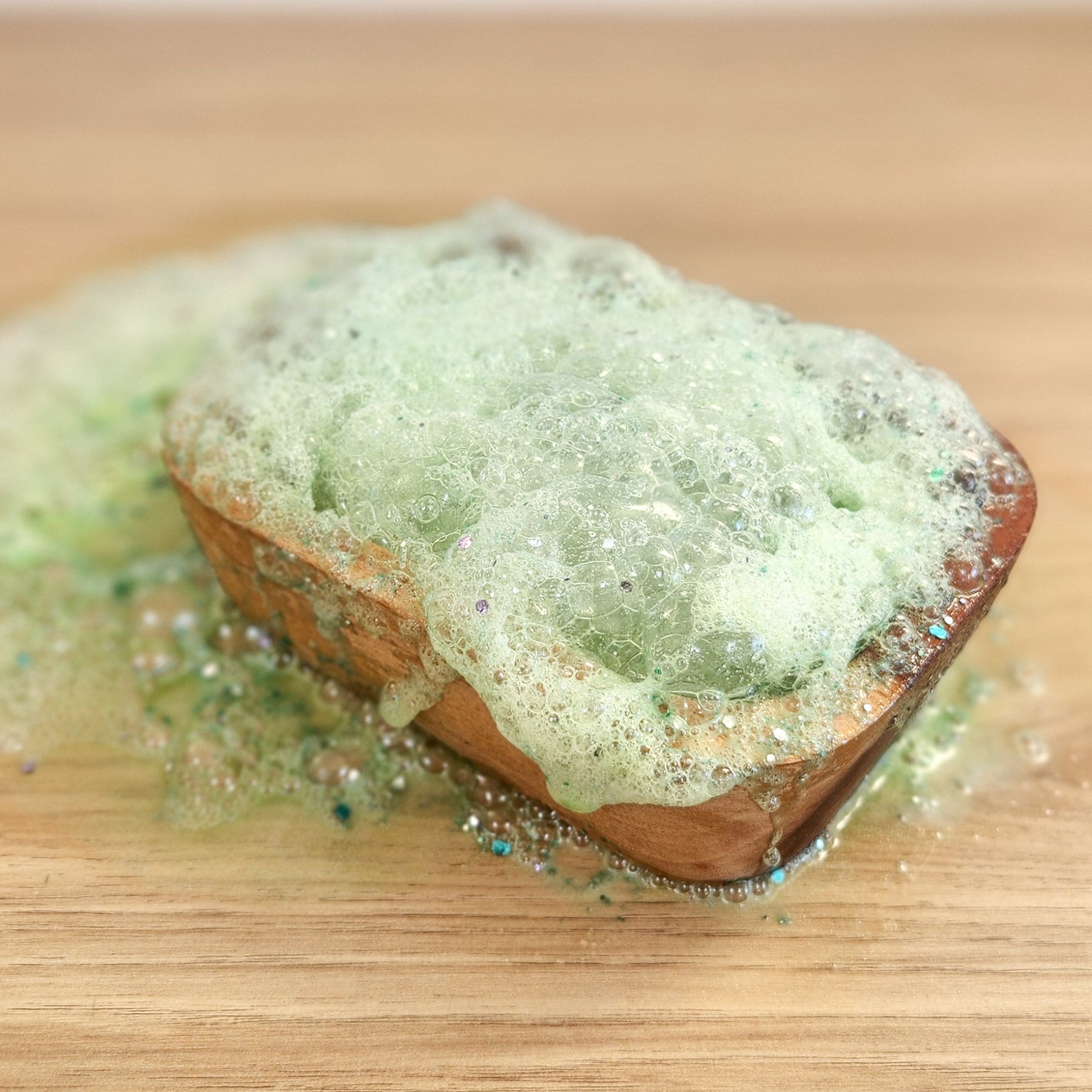 This fizz has a beautiful shimmering and sparkle to it. It is gorgeous to play with long after the bubbles have popped.